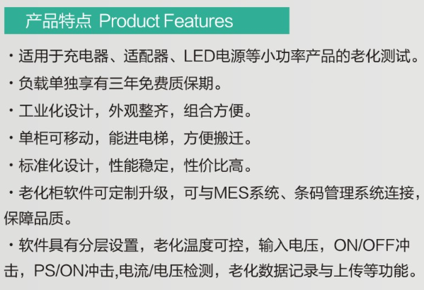 适用范围:适用于充电器、适配器、LED电源等小功率产品的老化蓝颜