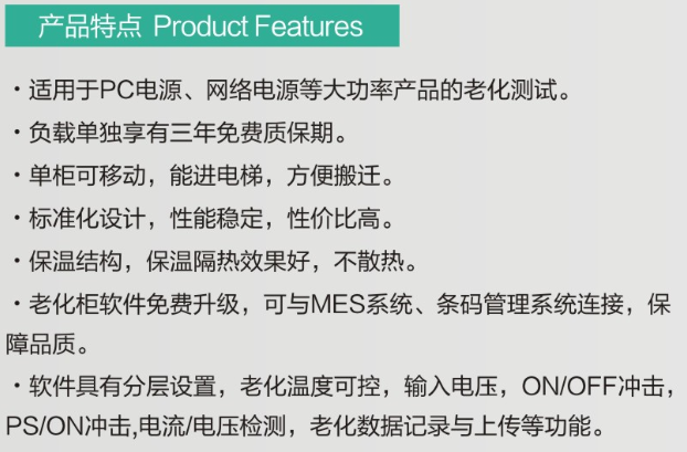 适用范围:适用于PC电源、网络电源等大功率产品的老化蓝颜 。